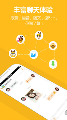 它是一款基于陌生人随机配对聊天的社交媒介,逗Bee为渴求交往的90后、00后Bee友谋福利。