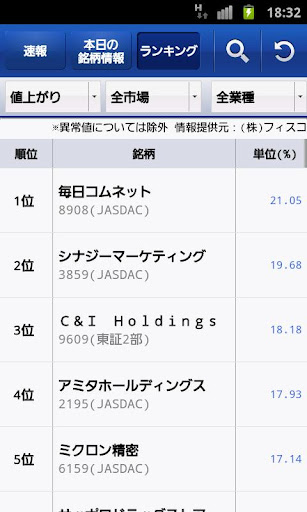 各種情報はユーザの要望を反映したカテゴリ(速報、本日の銘柄情報、ランキング)に分類し、分かりやすく見やすい表示にしました。