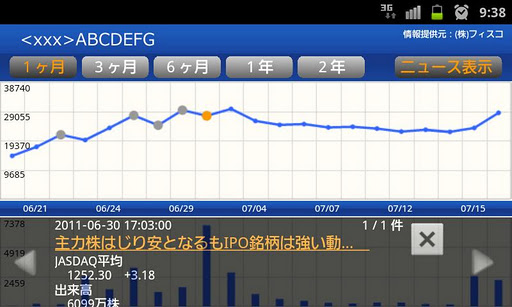 特に株価チャートは、ニュースと連動した表示となっておりスマートフォンならではの操作感になっています。
