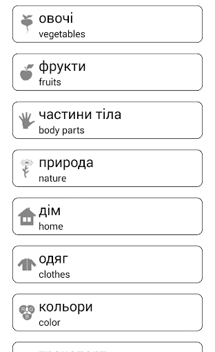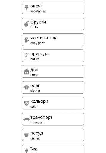 實際上,這就是帶圖片的詞典,又是個學烏克文的遊戲,本遊戲可以幫助學烏克文初級水平的學者或者小孩子們經過聽取配音,同時參與遊戲地學到很多的烏克語生詞。