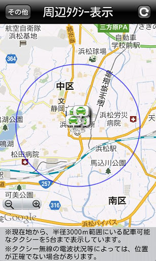 5.[その他] [周辺タクシー表示]機能を使って、現在地から半径3km以内にいるタクシー位置を把握することができます。
