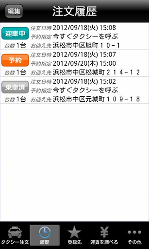 2.お客様の所へ最も早くお迎えに上がれるタクシーを選び出し、配車いたします。タクシーは、浜松市からは1台口から5台口まで、磐田市、掛川市からは1台口から2台口まで注文することができます。
