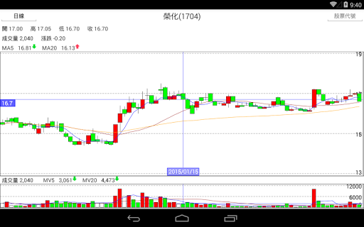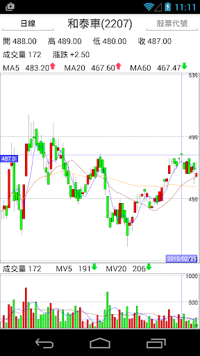 每日提供符合條件的選股報告,包括含玉線, 大陽線, 倒鎚線, 紡鎚線,鎚子線, 紅三兵, 黑三鴉,天劍線,墓碑線,十字夜星,跳空一字線,突破均線糾結;並可查詢個股K線(日線,週線,月線,5分線,10分線,30分線)