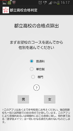 2. 「男」か「女」かを選択しましょう。都立入試では、男女で必要な得点が違うため、選択する必要があります。