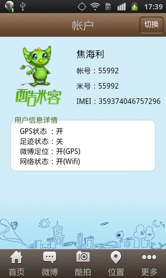 酷米客GPS定位系统是一款基于LBS(基站地位)和GPS实时定位、实时足迹记录、即拍即传、微博分享的完全免费定位软件,实时GPS定位监控老人和小孩,让父母放心,让小孩安心的定位软件