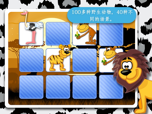在這款記憶遊戲中,每板逐漸變得愈加困難,所以這個遊戲會以一個非常好玩的方式刺激你的孩子,從而改善短期的認知能力。讓你的孩子和與他們心愛的野生卡通動物一起玩和成長。