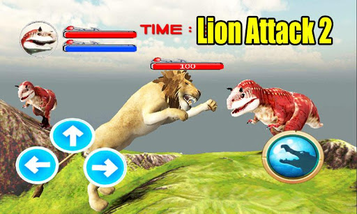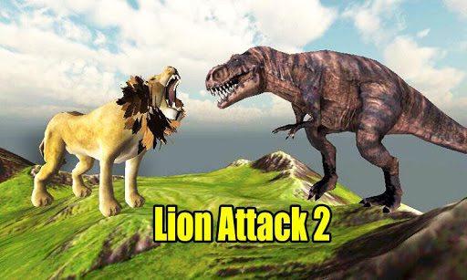 野生獅子攻擊恐龍2在侏羅紀。最熱門模擬器遊戲。