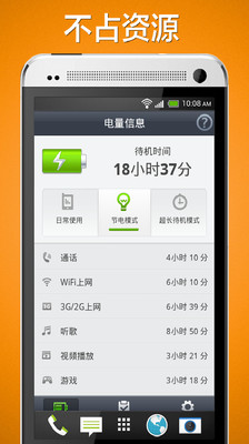 一款智能的手机电量管理软件,可帮助您显著节省电量,延长手机续航时间。包括一键节电、耗电项快捷开关、预计可用时间、电池保养、耗电统计、省电模式等实用功能,让您一手掌握手机耗电情况,科学管理电量。
