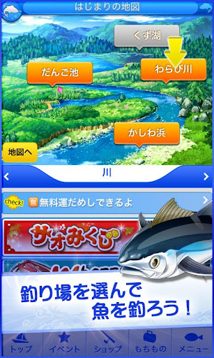 ・川の称号と海の称号があり、称号が上がると新しい釣り場を楽しめます!魚の種類が増えてもっと楽しく遊べるはず。