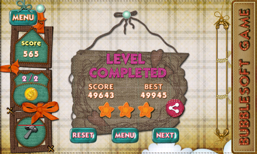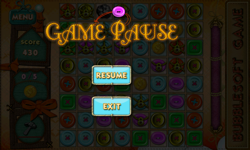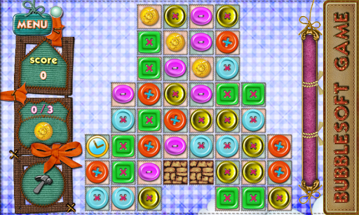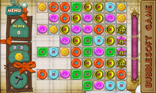 2.消除四個以上的鈕扣收集滿能量槽.贏得錘子,炸彈,閃電,火。