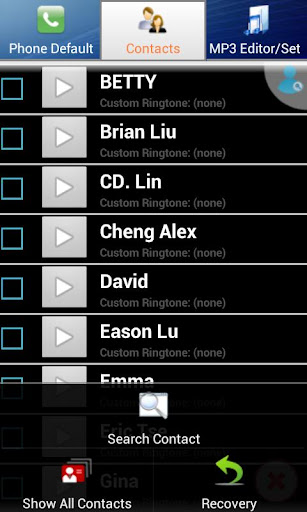 支援選取功能,可以一次設定多個聯絡人的鈴聲