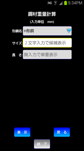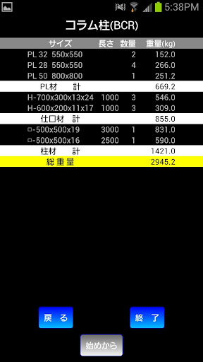 建築鉄骨向けの重量計算アプリです