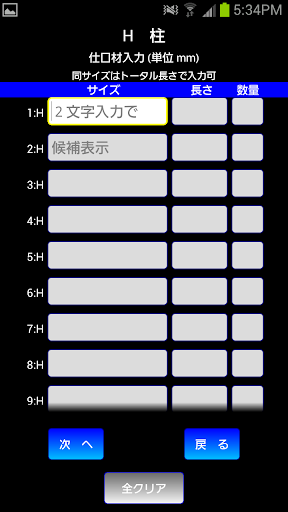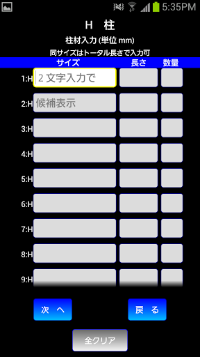 柱材入力 → 重量表示)