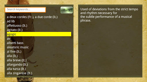 同時,作爲一款實用的工具,您也可以通過鋼琴寶典中內置的音樂術語辭典來快速查閱不同語言的音樂術語的含義。
