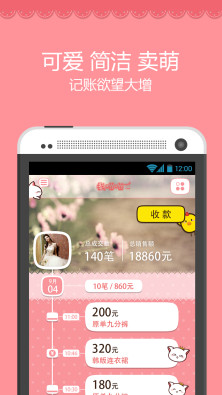 简洁的的记账模式,超萌粉嫩的美女专属界面。