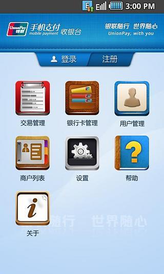 银联手机支付收银台简称银联收银台,是中国银联充分利用无卡支付通道,结合支付验证要素及银联安全认证,为广大持卡人倾力打造的一款安全便捷的即时支付工具用户无需开通网银、无需更换手机,便可轻松完成在线支付,为用户提供安全、便捷、通用的在线支付服务 银联收银台包含认证支付、快捷支付、储值卡支付三种支付方式,为用户提供全方位的服务 银联收银台采用了多密钥双安全通道的最高级别安全保障体系, 安全键盘、数据全程加密、密码超限保护、登录超时控制等在涉及用户资金安全的交易中需要验证用户手机号,从而保证了用户交易数据的唯一性,防止被篡改和伪造,最大程度的保障客户使用安全 主要功能 (1)支付方式:可使用认证支付、快捷支付、储值卡支付等多种支付方式进行支付 不需开通网银、不需注册即可以完成支付. (2)订单推送:订单、账单实时推送,让您支付无忧 (3)消费记录:交易记录、交易明细查询,清晰明了 (4)生活应用:陆续开通车票订购、手机充值等服务 (5)商户列表:合作商户WAP购物,感受手机购物新体验 如何启动银联收银台? 在支持银联收银台的商户WAP网站、电话购票等服务中,系统生成订单并推送至用户手机客户端,如果手机客户端已经安装银联收银台,它将被自动激活,用户在银联收银台中输入支付要素完成支付 支持银行: 信用卡:中国银行、农业银行、工商银行、建设银行、交通银行、招商银行、邮储银行、兴业银行、光大银行、民生银行、华夏银行、中信银行、浦发银行、北京银行、上海银行、东亚银行、广发银行、深发银行、平安银行、宁波银行等全国主要商业银行的信用卡 借记卡:工商银行、农业银行、邮储银行、光大银行、上海银行、花旗银行、中信银行、深发银行等,全国主要商业银行的借记卡即将全部开通 储值卡:支持中银通卡、中铁银通卡,更多类型储值卡将陆续开通
