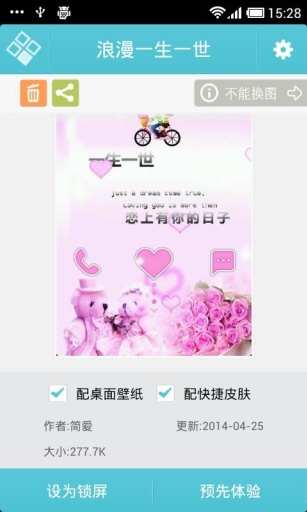 最浪漫的事就是和你一起慢慢变老。全球首发浪漫一生一世锁屏,界面非常唯美,包含了唯美爱心飘动,还有骑单车的恋人。想和你的他一起浪漫下去吗?那就赶快来拥有吧!