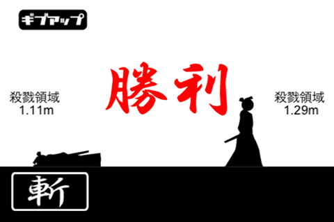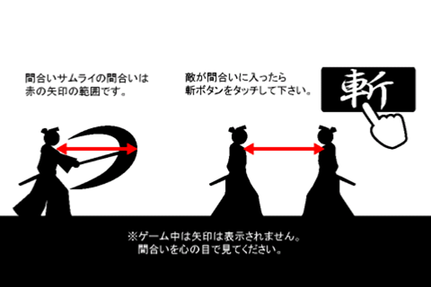 剣の間合いを見切ってすれ違う敵が間合いに入ったら「斬」ボタンをタッチ。