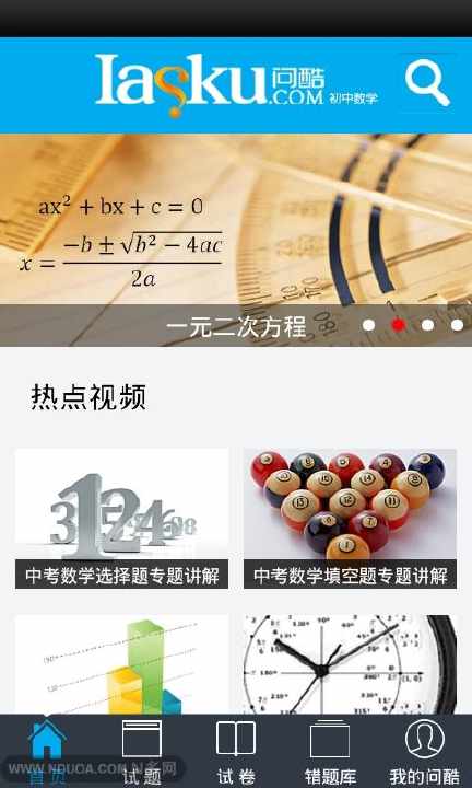支持平台版本:2.2及以上问酷掌上学习助手是利用学生碎片化的低价值时间,帮助学生解读学科疑难为目标的学科学习应用软件.学生通过搜题,做题,检验,看视频讲解等循序渐进的学习过程,真实地实现学生自主化学习,从而达到学生从练习,到攻克,最后直至掌握的学习目的,帮助千万中国学子实现学习的跨越式进步.百万试题:提供上百万道中小学各学科各类型试题内容及答案名师视频讲解:通过顶级名师独家倾力奉献丰富解题视频,让学生获得独到的解题思维,以点代面,触类旁通.只需5-10分钟就能打通一道典型例题的思维脉络.版本特性首页,显示热门视频同步练习,根据高中年级分布所学的全部知识点题目高考题,涉及到高考常考的知识点题目精品练习,收录了大量优质的,有针对性的,难度较大的试题试卷,历届各地高考及模拟试卷等(每一题型及练习里都配有名师视频讲解)如有好的建议或想吐吐槽,都热忱地欢迎您邮件我们:support@iasku.net,或私信留言给新浪微博 @问酷网,腾讯微博@问酷网,问酷网新浪博客,问酷网微信公众平台.同时欢迎加入问酷客户端QQ群1: 40720882和QQ群2:291887178,为我们建言献策.有好建议被采纳的同学还有机会获得问酷定制的精美奖品.