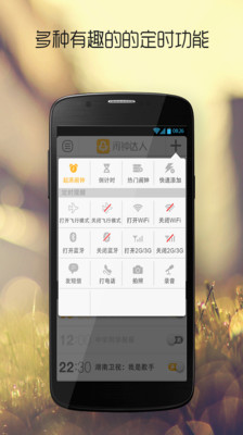 闹钟达人不仅可以定时控制常用的功能,如定时飞行/定时蓝牙/定时WIFI等功能,还有诸多类似定时发短信/定时打电话等有趣的功能。