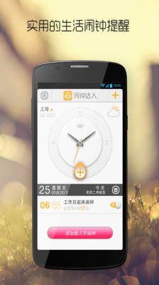 闹钟达人是生活助手。早晨闹钟响起查看最新天气预报,出门穿啥尽在掌握!每天喝上8杯水,心情开心身体健康!