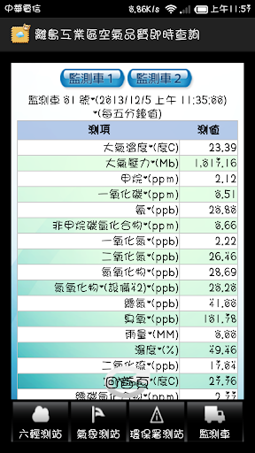 以雲林縣環保局為主的離島工業區空氣品質即時查詢,即時查詢各站點的氣象資料