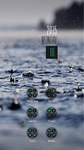 水是每事物的來源;它是透明的精靈這融合成為海洋。這是一個藍色風格的主題;它的壁紙是關於雨天,當雨滴都在這一刻落在大海與一個美麗的噴霧飛濺的畫面。透明,晶瑩可愛。如何激活這些水分子,在微觀世界是很有意思呢!我們還設計了藍綠色圖標和窗口小部件,包括日曆,天氣預報,時鐘和電池信息。這自然和清新的風格為你,為這個春天的日子!