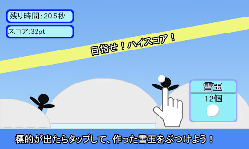 ・ターゲットが出たらタップして、作成した雪玉で攻撃します。