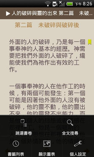- 有跳選書卷、全文搜尋、書籤列表、顯示圖表、個人設定等功能。