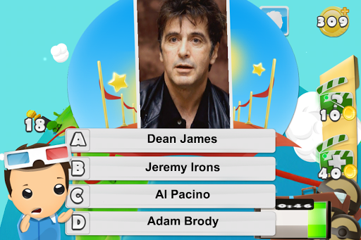 如果你喜歡一般知識問答題,你是一個偉大的球迷流行的電影或電視節目,有沒有比這個更好的電影問答遊戲。類似的遊戲應用程序和圖片測驗,現在已經成為一些市場上最熱門的遊戲,但這種免費電影問答遊戲與3D圖形,簡單的外展它們全部原件和娛樂性很強的名人問答題,有競爭力的遊戲和有趣的成就。