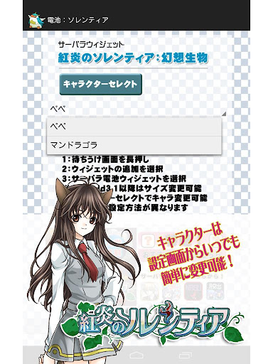 ウィジェットを待ちうけ画面に設置すると、ソレンティアの不思議生物が電池残量を可愛くお知らせ!