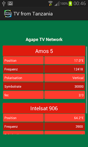 一個按字母順序排列列表中的電視從坦桑尼亞頻道Sattelite頻率。