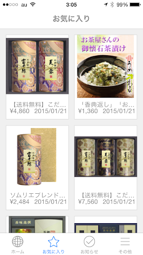 『静岡茶通亭(しずおかちゃつうてい)』のアプリでは、『静岡茶通亭(しずおかちゃつうてい)』楽天市場店に掲載されているアイテムを、いつでもどこでもスマートフォンでご覧いただき、気に入ったアイテムはその場でお気に入りに追加することができます。流れるようなスクロールで、また、直感的な操作で快適なお買い物をお楽しみください。