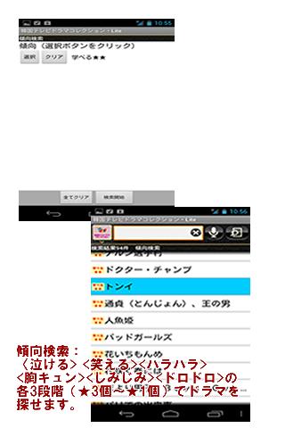 アプリ版の『韓国テレビドラマコレクション Lite』は、最新刊の『韓国テレビドラマコレクション2012』から、主要な作品712本、キャスト・スタッフ3063人を厳選、データベースの検索機能を生かした「便利で・使えて・楽しめる」アプリとして開発されました。