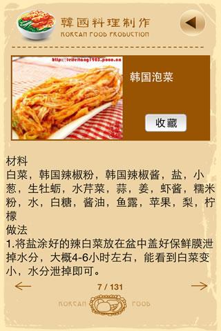 ,用凉拌的方式做成,味道的好坏全掌握在厨师的手指中。尝过韩式白菜泡菜的客人都对这个韩国饮食文化中的“国粹”难以忘怀。韩式烤肉以高蛋白,低胆固醇的牛肉为主。