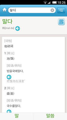 精心收集日常生活中常用的各类型单词,韩语初学者入门必备。《韩语发音入门+3000实用词汇随身记》于2013年1月第1版发行,手机版与2013年4月第2次印刷版同步。内容涵盖食、衣、住、体育、娱乐等,简单而实用。中韩对照,兼具词典功能,不仅是初学韩语的最佳语言学习教材,更是方便读者随时自学的工具软件。单词都标有韩国当地教外国人学习韩语时使用的标准罗马拼音,学习单词,仿佛置身韩国当地的语言学习中心,让您不用出国,就能学到正确的韩语发音,体验有如留学韩国的情景。海词词典(中国第一个在线词典dict.cn)携手华东理工大学出版社权威正版发布,具有语音查词、通知栏快捷查词等便捷查词功能,还有清晰发音、生词收藏和复习背诵等辅助学习功能。选择正版软件,学习更有保障!(版权所有,盗版必究)