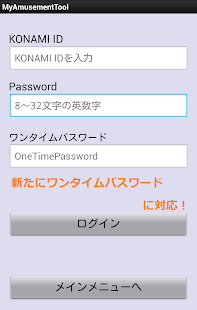 持关于安全性本应用软件使用者任意使用为登录时,的KONAMI ID和Password。