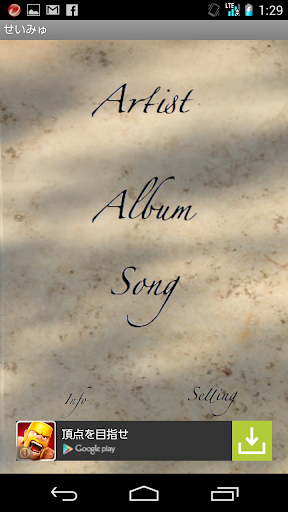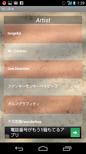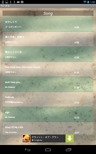 ※曲が何も表示されていない場合は、スマートフォンに音楽をいれているかどうかご確認ください。