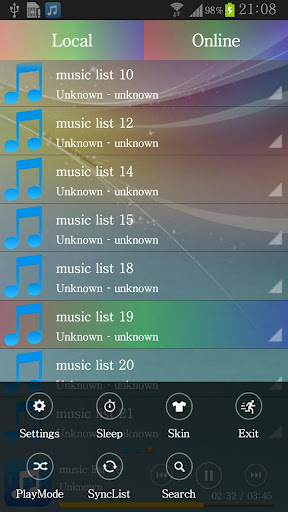 強大的音樂引擎,MP3播放機,快速搜索所有的音樂文件,輕鬆支持所有格式的音樂文件,在線音樂搜索,自定義背景皮膚。