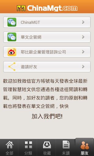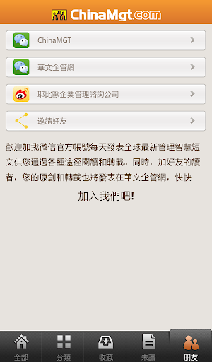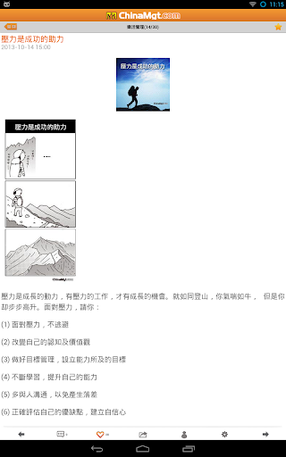 華文企管網(chinamgt.com)出品的『領導力管理智慧精華』,結合企業各階層的實務經驗,加上哈佛企管多年來成功輔導企業的案例、教育訓練的模式以及國內外最新的管理趨勢,每日提供多篇短小精悍的管理文章,您在通勤路上、候車候機、電梯裡、排隊時……,它都將成為您隨時隨地獲取管理智慧的好幫手。
