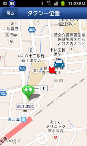 注文確定後、タクシーがどこまで来ているか地図上で確認できます。