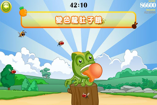 -「變色龍肚子餓」:用變色龍長長的舌頭,看你能在限時內吃到多少龍龍最愛的小昆蟲。