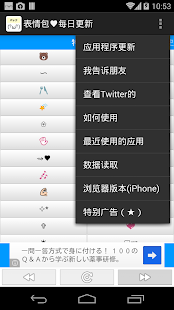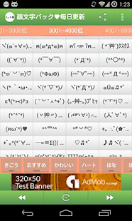 「メニュー」-「アプリ更新」で毎日アプリを更新して最新人気顔文字を集めるとよいです♡