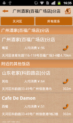 2、全国各个城市餐厅预订电话快速搜索、一键拨打;