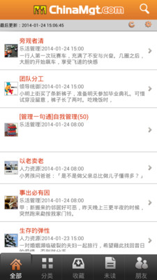 不管是办公室里的应对进退、领导管理、创意思考,或是生意经、理财时尚、健康乐活我们已为您精挑细选最实用的内容,快打开『领导力管理智慧精华』,一键搞定! 台湾华文企管网(chinamgt.com)出品的『领导力管理智慧精华』,结合企业各阶层的实务经验,加上HPO集团多年来成功辅导企业的案例、教育训练的模式以及国内外最新的管理趋势,每日提供多篇短小精悍的管理文章,您在通勤路上、候车候机、电梯里、排队时,它都将成为您随时随地获取管理智慧的好帮手。