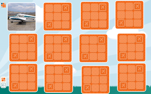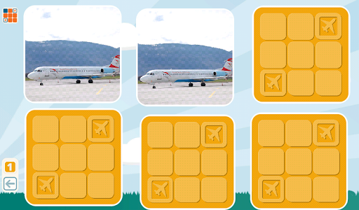 這款兒童記憶遊戲在圖塊上擁有多張飛機照片。