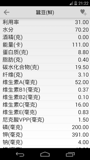 食物營養表可以查詢各種食物的營養成分(熱量,蛋白質,脂肪,維生素等)