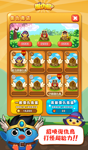 30種不同的復仇鳥,獨特造型加上分數、金幣加成能力,召喚出最可愛的復仇鳥來幫助你吧!