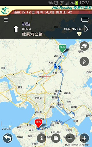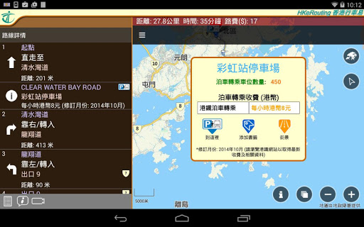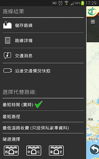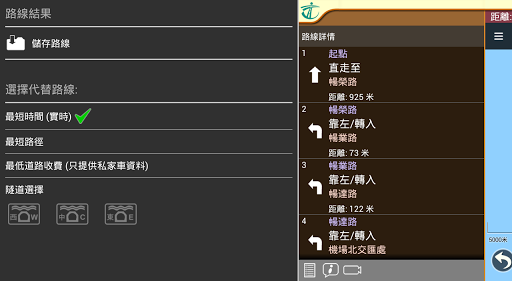 3. 路線可選擇最短時間、最短行程或最低道路收費(以私家車收費作比較);