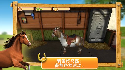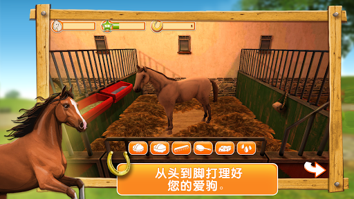 在马厩中,你会学到很多照顾马的知识。你可以刷马,宠爱你的马。必须清理马蹄,而且马厩需要新鲜的稻草。这一切都可以通过触摸屏完成。